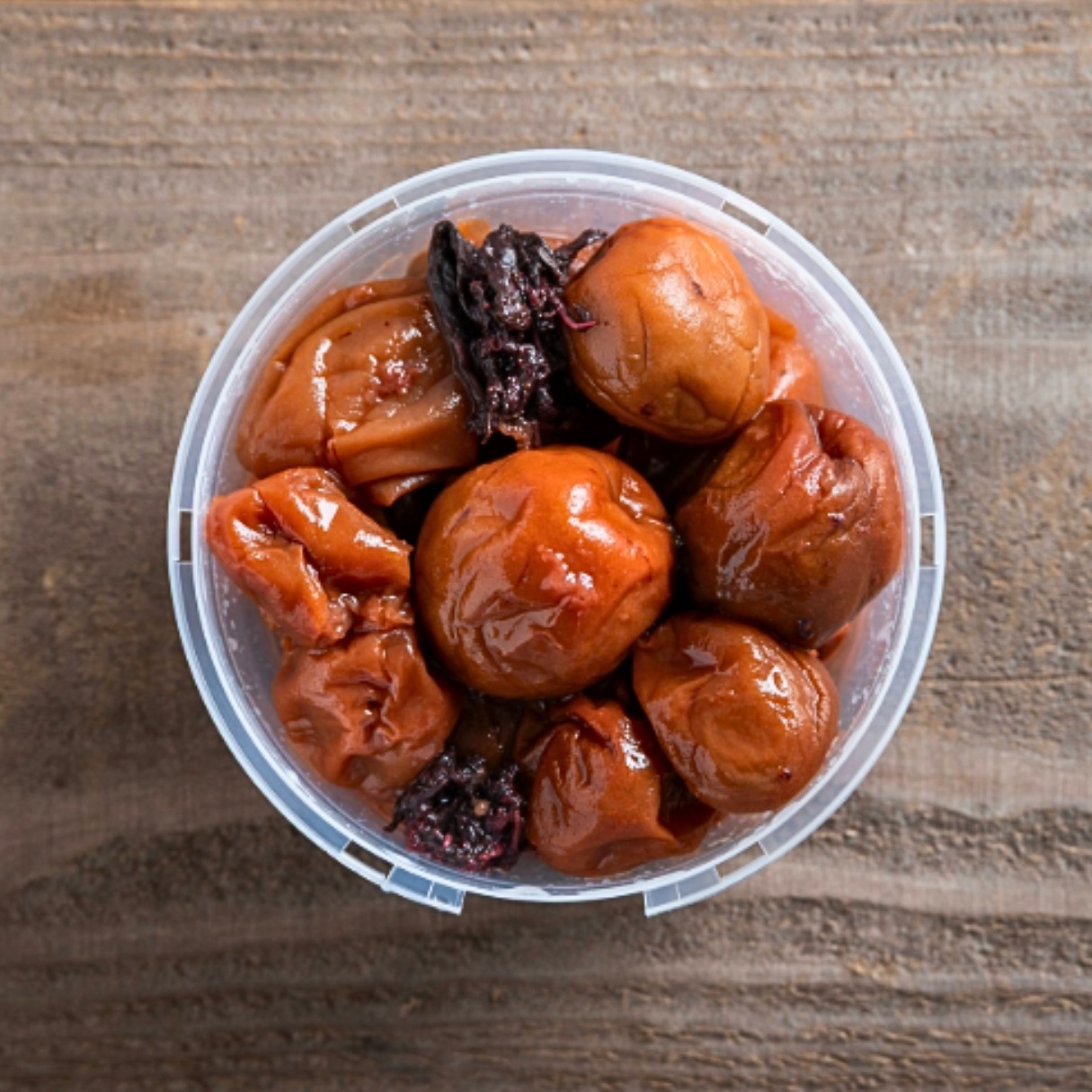 梅子經夏季乾燥去除多餘水分後,以「梅醋復水法」浸泡在紅紫蘇和梅醋中。這種方法既能延長梅子的保質期,又能使梅子果肉飽滿柔軟。