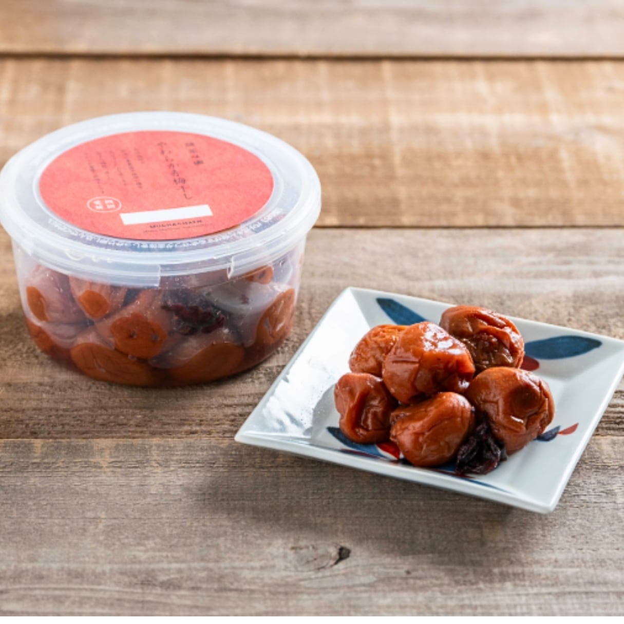 這款產品僅使用愛媛縣產的梅子、國產紫蘇和鹽作為原料,不添加任何色素、甜味劑、防腐劑或調味料(氨基酸等),保留了梅子的天然酸味和紫蘇的天然風味。